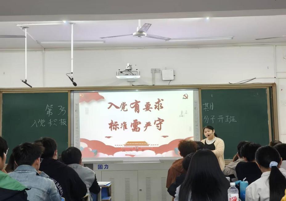 曾艳以中国共产党党员发展细则为核心,向全体学员介绍了入党的条件、入党积极分子的确定、培养和考察以及大学生的入党流程及注意事项。
