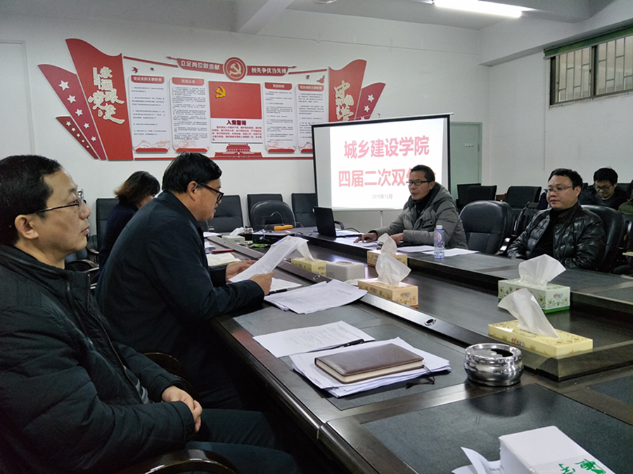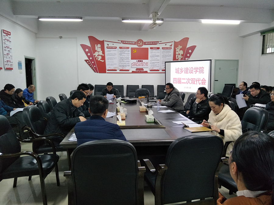 2018年12月20日下午,城乡建设学院四届二次“双代会”在求真楼5209会议室顺利召开,会议听取并讨论通过了院长段林东作的学院2018年工作报告、党总支副书记兼分工会主席刘桂江作的2018年分工会工作报告,审议通过了《城乡建设学院2018年专业技术岗位内部等级晋升实施方案》。大会由党总支书记张友柏主持,院党政领导和全体教职工参加了会议。