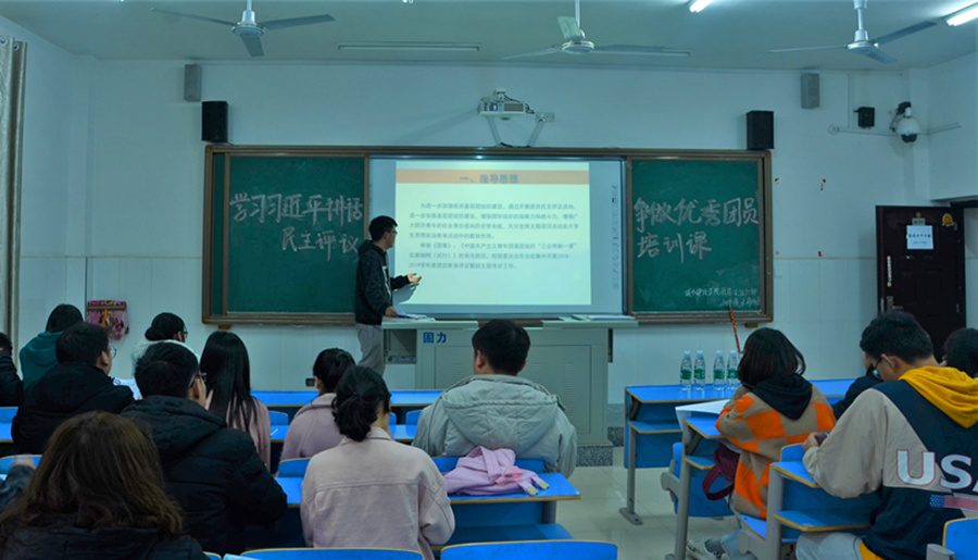 为进一步加强基层组织民主,加强团员队伍思想建设,严格团的纪律,规范团员管理,增强团组织的吸引力和凝聚力,3月14日下午四点,邵阳学院城乡建设学院团总支组织部在明德楼南栋108召开民主评议培训课。此次培训课由团总支组织部部长彭率学长主讲,培训的对象为邵阳学院城乡建设学院14至18级全体团员。