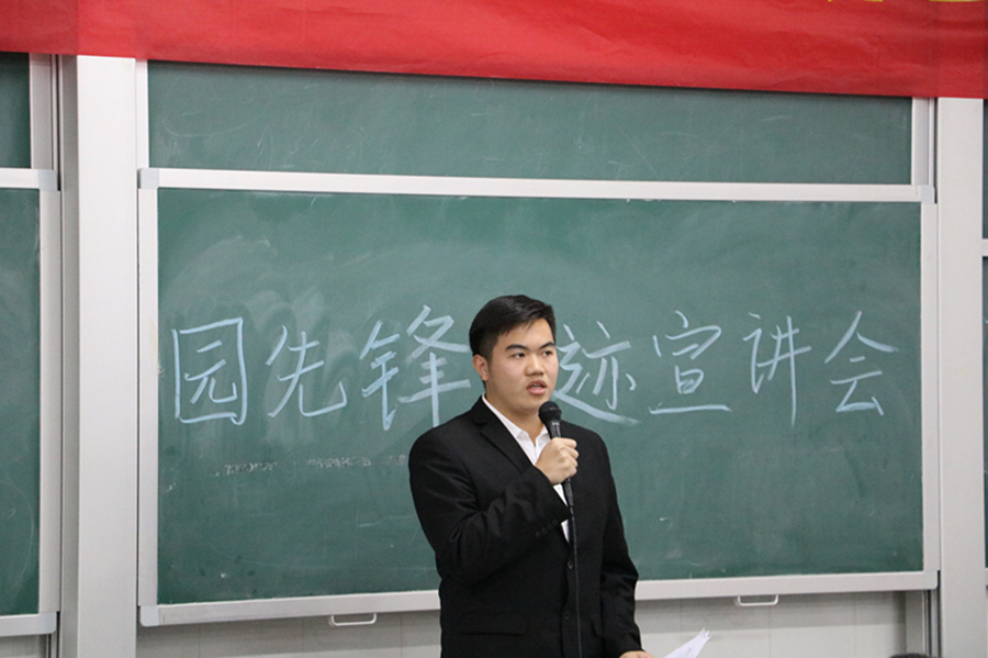 为了发挥青年优秀典型的示范和导向作用,引导学生成为有理想、有本领、有担当的新时代先锋,11月22日下午4:00,城乡建设学院校园先锋宣讲会于明德楼南栋T4教室举行。出席此次活动的人员有我院党总支副书记刘桂江、各年级辅导员以及学生代表。