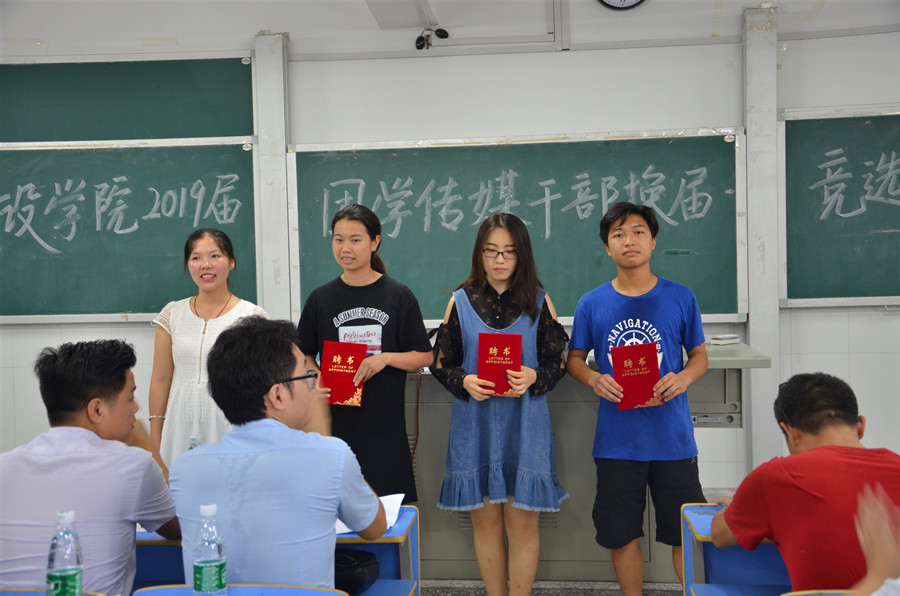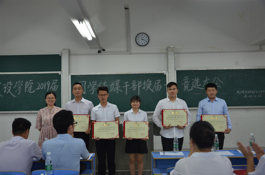 6月20日下午3点,城乡建设学院于明德楼南栋T2教室举办2019届团学传媒干部换届竞选大会。城乡建设学院党总支副书记刘桂江、团总支指导老师廖述海、学生会指导老师宛庭利、传媒中心指导老师何辉、17级辅导员曾艳和徐传鸿老师作为此次竞选的评委出席,三大组织全体成员参加会议。