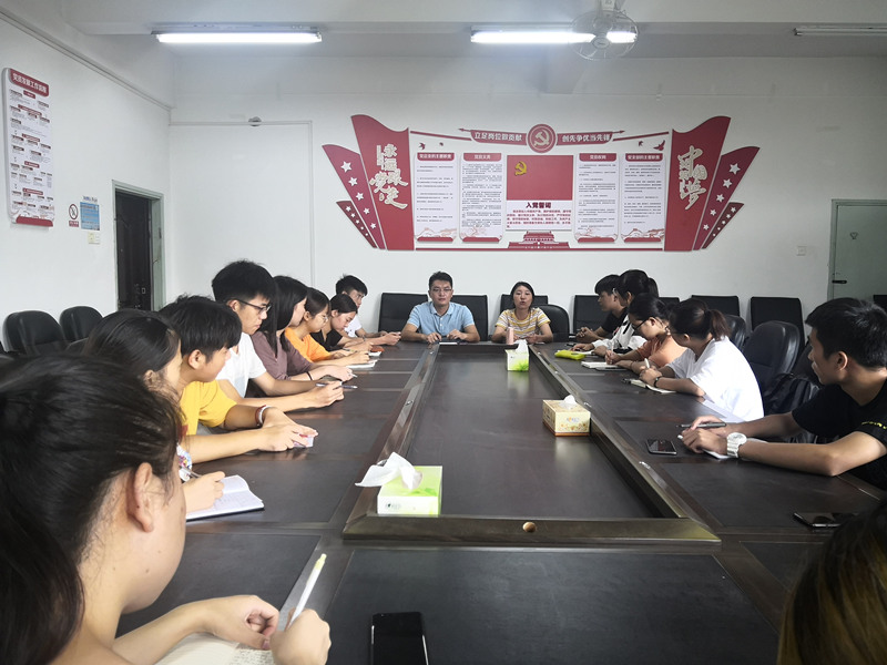 2019年8月29日中午12时30分,我院2019级新生代理班主任首次工作会议于求真楼209会议室召开。2019级辅导员袁平平和廖述海老师、全体2019级代理班主任参加了会议,会议由廖述海老师主持。
