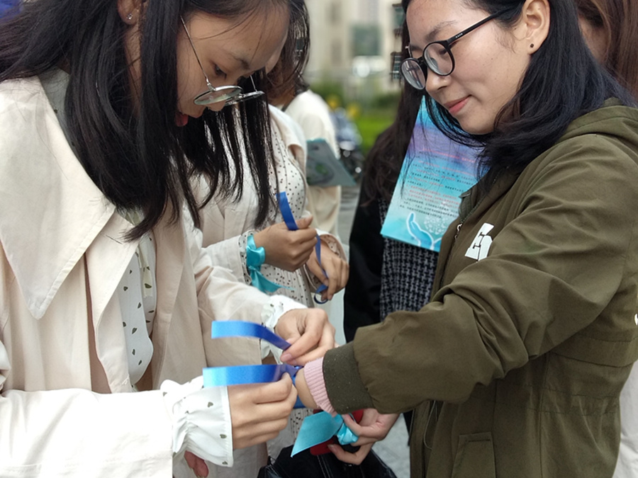 活动期间,森蓝环保协会联合全校各大社团向全体师生发出节约水资源倡议。在活动现场,咨询者不断,工作人员向同学们科普节约用水的知识,并为同学们系上活动主题的蓝丝带。同学们纷纷在活动主题的横幅上签名以表达自己爱护水资源的决心。。