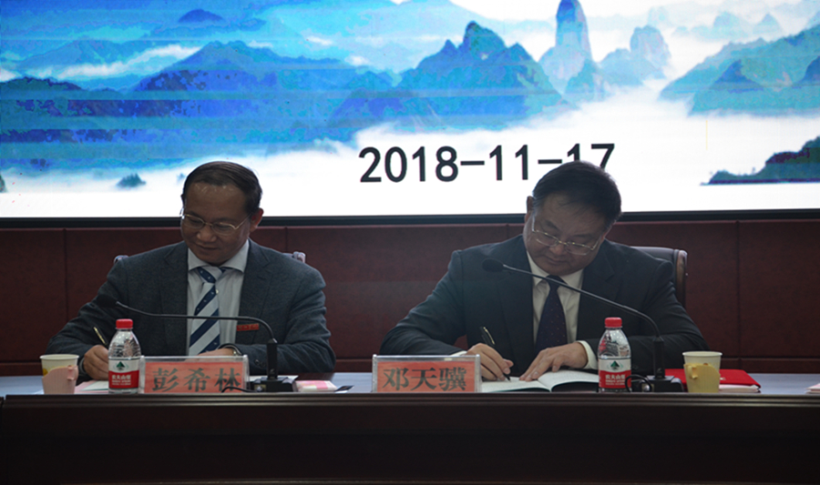 会议伊始,伟大集团与邵阳学院签订联合办学协议,校长彭希林聘请邓天骥为邵阳学院的客座教授。邓天骥亲切地向邵阳学院学子问好,并心潮澎湃地分享了他当年风华正茂的求学经历及如何带领伟大集团发展的历程。他自豪地说道,伟大集团是一家以城乡一体化特色小镇开发建设为主,集金融、投资、基金管理、地产开发、节能建筑、工程建设等多方面于一体产融结合的大型现代企业集团,今后将继续高举城乡一体化发展的“伟大模式”大旗,矢志破解城乡二元困局,最终实现人企和社会的共赢发展。