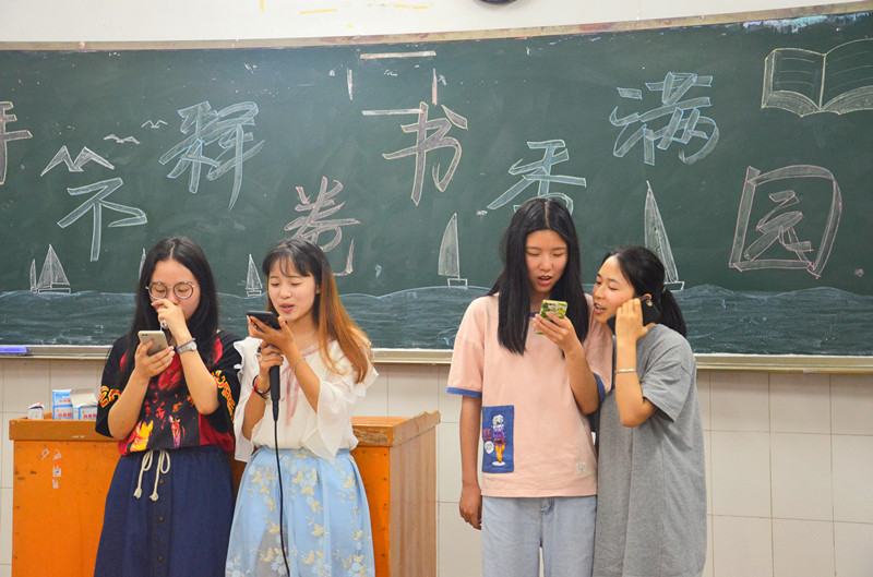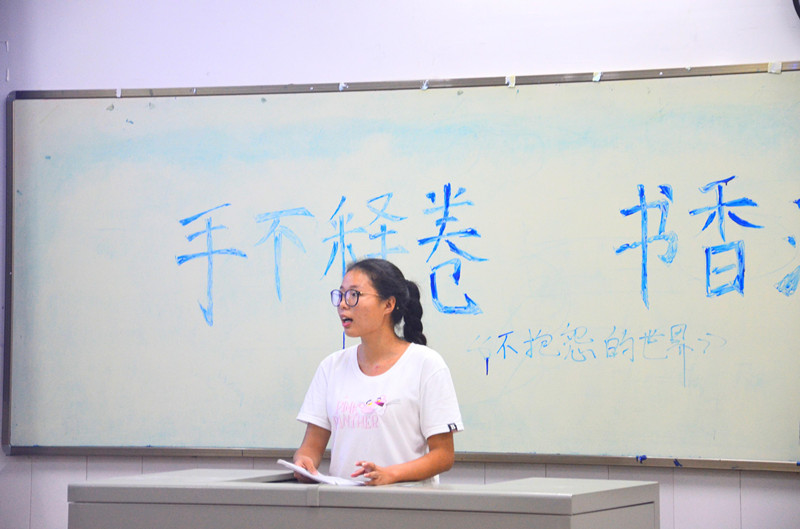 当日晚19时30分,大一学生齐聚明德楼北栋教室。在一片掌声中,活动正式开始。同学们纷纷上台介绍自己喜欢的书籍。有回忆童年生活的散文《朝花夕拾》;有描写政治黑暗的经典著作《红与黑》;有历尽世间沧桑和磨难老人的人生感言《活着》等等。同学们听完大家的读书感言,都表示受益匪浅。在读书介绍后,每个班还准备了才艺表演,同学们的欢声笑语回荡在每个教室。