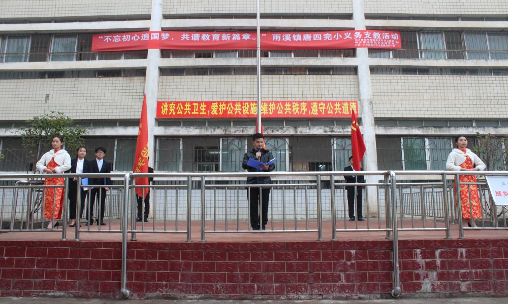 为深入贯彻新时代新教育,4月27日8:10,城乡建设学院赴大祥区雨溪镇唐四完小举行以“不忘初心追国梦,共谱教育新篇章”为主题的义务支教活动。唐四完小校长唐联民、城乡建设学院学生党支部、团总支副书记蒋毅、宋勇、田佳玲、邓圆圆作为现场嘉宾与志愿者以及唐四完小全体师生一同参加了此次活动。