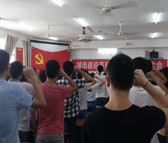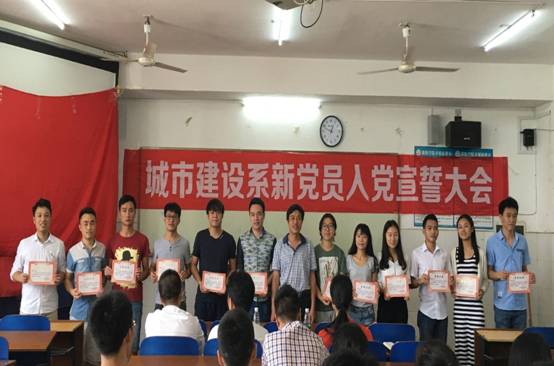 2016613日,城市建设系党总支在明德楼北栋407教室召开新党员入党宣誓大会,城市建设系党总支书记夏世忠同志、学生党支部各支部书记和全体学生党员参加。