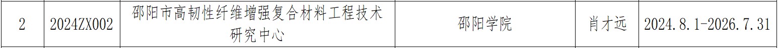 近日,邵阳市科技局公布了2024年度邵阳市工程技术研究中心立项名单,土木与建筑工程学院申报的“邵阳市高韧性纤维增强复合材料工程技术研究中心”成功获批立项建设。