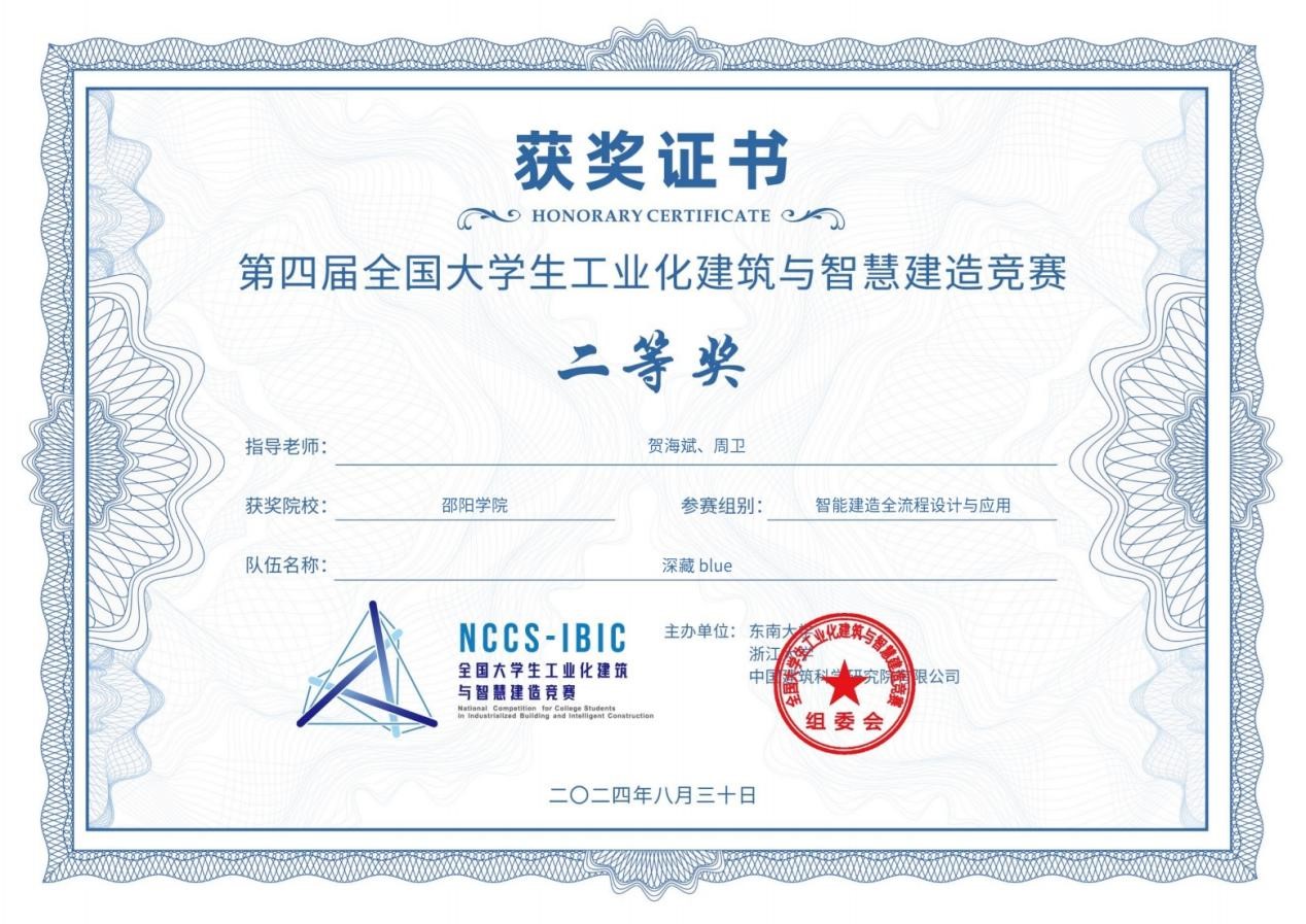 2024年8月30日,第四届全国大学生工业化建筑与智慧建造竞赛(NCCS-IBIC)在浙江大学圆满落下帷幕,我校土木与建筑工程学院代表队C赛道——智能建造全流程设计与应用赛道中获得全国二等奖2项,创我校参赛以来最好成绩。