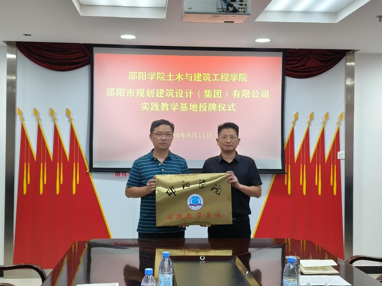 2024年9月13日,邵阳市规划建筑设计集团有限公司迎来了一次重要的学术交流活动。在这一天,土木与建筑工程学院的黄雄伟书记带领城乡规划教研室的教师团队,与邵阳市规划建筑设计集团有限公司的领导共同出席了实习基地挂牌仪式。此次挂牌仪式标志着双方在教育与实践相结合的道路上迈出了坚实的一步。