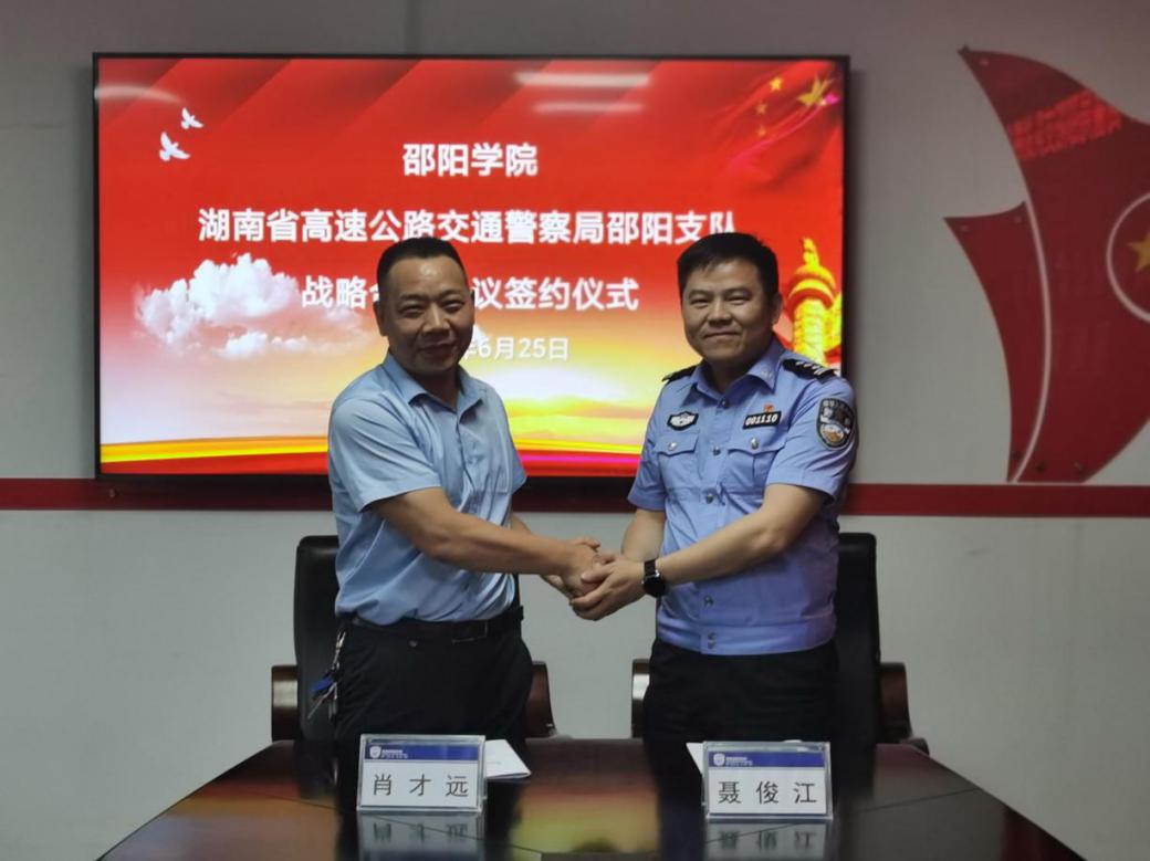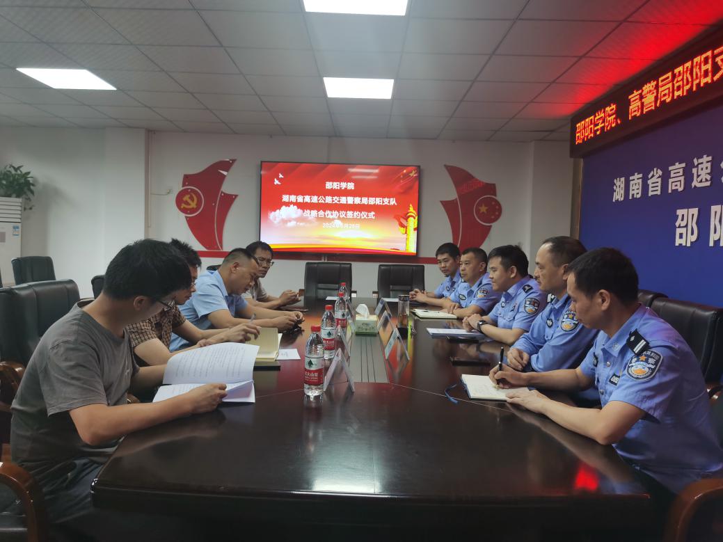 6月25日下午,邵阳学院在湖南省高速公路交通警察局邵阳支队办公室与邵阳支队举行战略合作协议签约仪式,邵阳学院、湖南高速邵阳支队相关分管领导与技术人员参加此次座谈活动。
