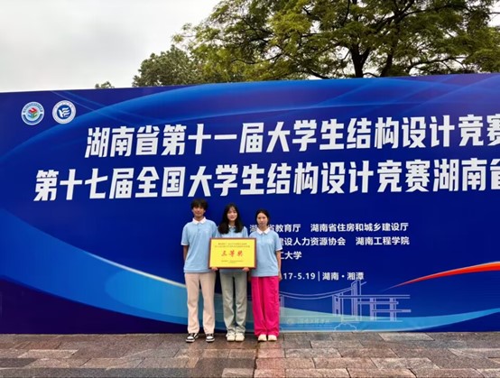 5月17—19日,湖南省第十一届大学生结构设计竞赛暨第十七届全国大学生结构设计竞赛分区赛在湖南工程学院举行,来自国防科技大学、中南大学、湖南大学等32所高校共计93支队伍参赛,我校派出三支代表队参赛并获得三等奖一项。