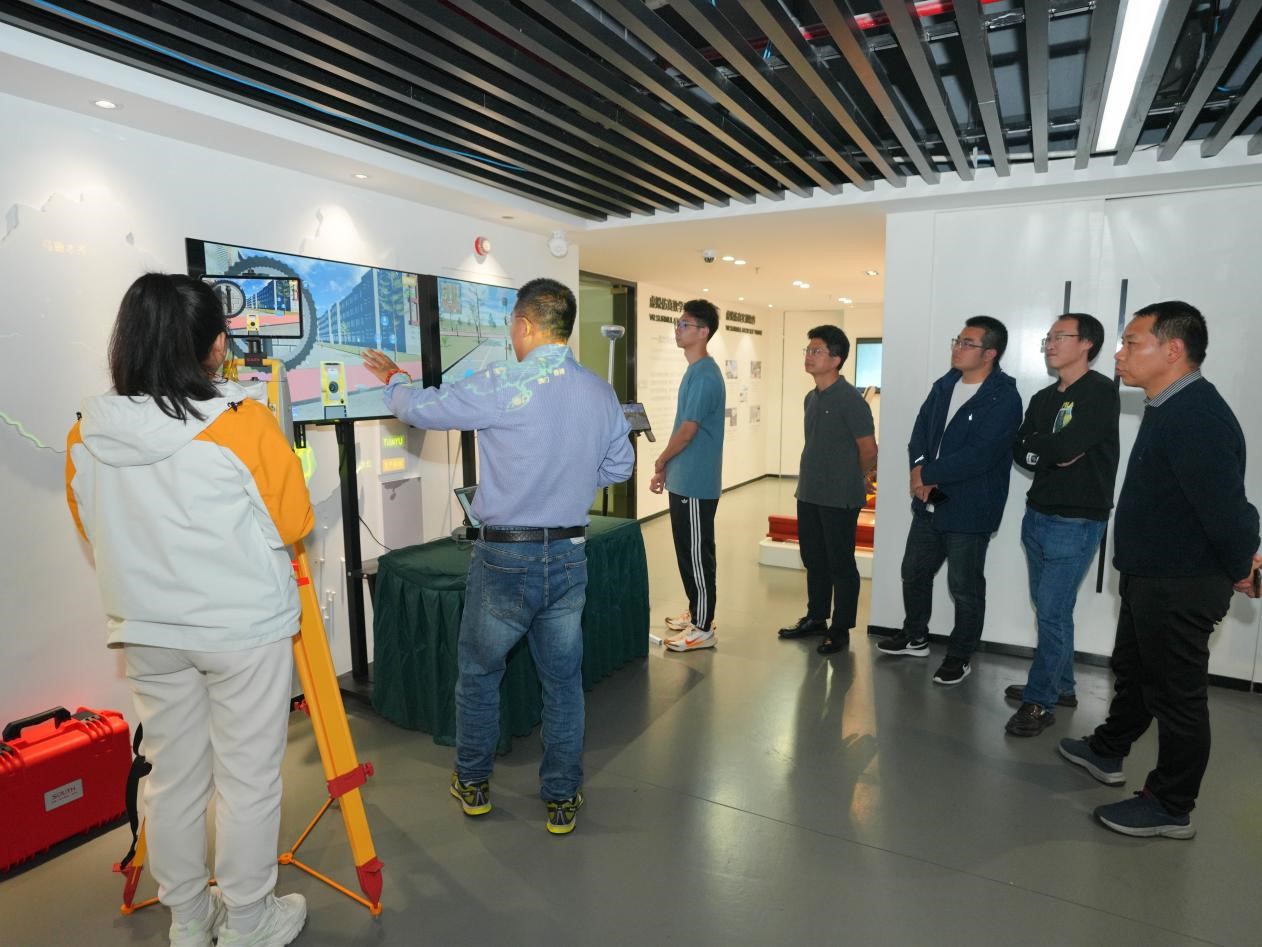 南方测绘公司是我国测绘装备龙头企业,拥有深厚的文化底蕴,是国内测绘技术尖端企业代表。郭副总裁带领我校人员参观了南方测绘展览馆,以测绘科学与技术发展为脉络介绍了公司各类先进测绘装备与手段。