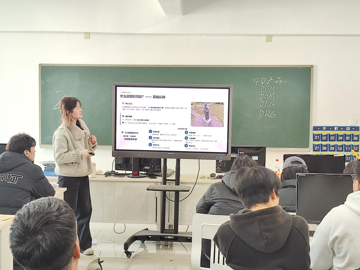 2026年1月6日,测绘工程专业的《摄影测量与遥感(实景三维建模)实习》课程开展了一次特殊的教学实践。2021届毕业生袁思颖校友返回母校,为在校生演示了实景三维的场景建模与渲染全过程,带来了一堂生动直观的专业实践课。