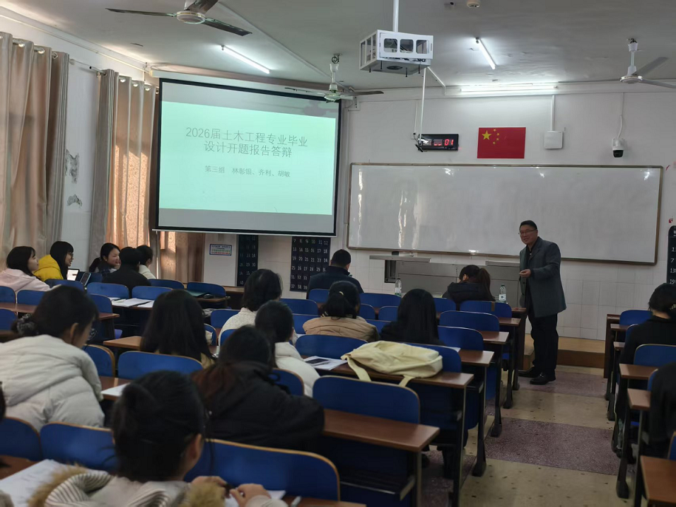 12月25日,土木工程教研室组织召开2026届本科毕业生毕业设计(论文)开题答辩会议。答辩按专业方向分为8个小组进行,每个小组均由经验丰富的专业教师与具备工程实践背景的“双师型”教师共同组成评审团队,严格把关,确保了答辩过程的公平性、公正性与专业性。