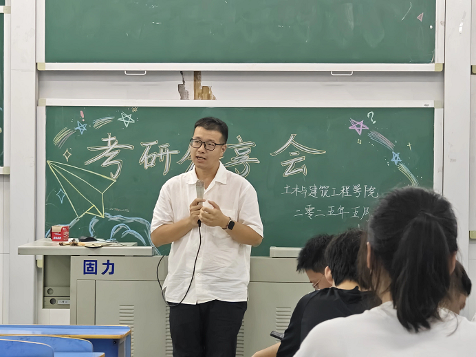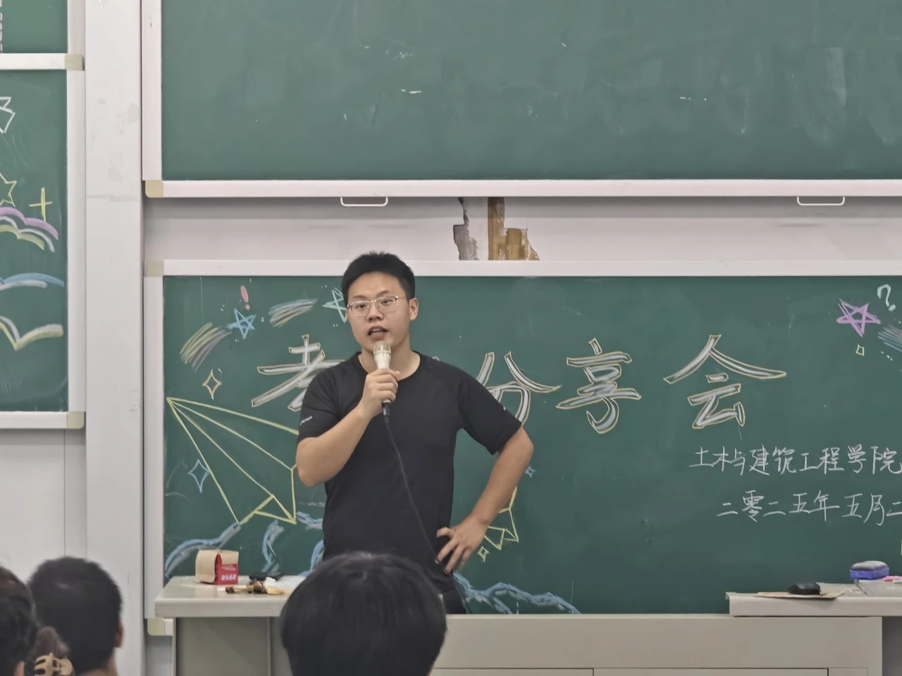 为帮助学子明晰考研方向、破解备考难题,5 月 22 日,邵阳学院土木与建筑工程学院精心举办考研经验分享会。本次活动由黄鑫、樊祥主持,唐后乐、李品两位老师到场指导,多名考研上岸学子倾情分享备考心得,学院各年级学生踊跃参与,共同搭建起经验传承、答疑解惑的交流平台。