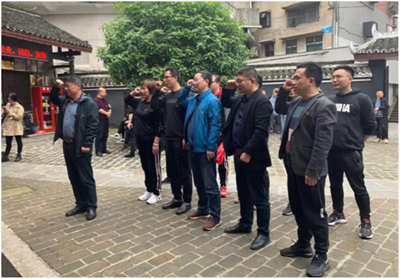 集中学习后,全体与会人员一行到八路军驻湘通讯处旧址现场学习。在旧址前,面对党旗,党总支书记张友柏带领党员干部一起重温入党誓词。随后,大家参观馆内文献资料、历史图片和珍贵文物,重温共产党光荣历史,感悟革命的艰苦卓绝,感受坚定的共产主义信念和革命必胜的信念,追忆革命先烈。