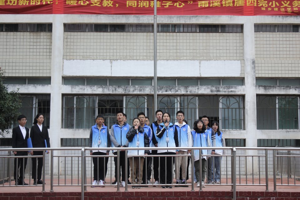 初冬虽至,但总有支教散发着温度,温暖稚子的心灵。11月18日,由城乡建设学院“心语心愿”特色成长工作室主办,城乡建设学院团总支社会实践部与学生党支部承办的以“不忘初心,建功新时代;暖心支教,同润稚子心”为主题的雨溪镇唐四完小义务支教活动开幕式在唐四完小举行。城乡建设学院团总支书记兼支教活动指导老师何辉到场进行指导,志愿团队师生代表共38人参加了此次活动。