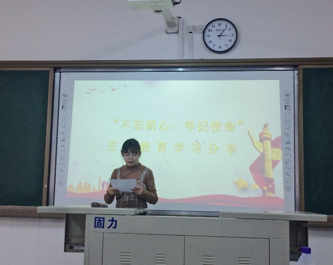 会上,党员同志们积极交流了主题教育开展以来自身学习工作中的心得体会。学生党员龙彬指出,“不忘初心,牢记使命”是党保持永远年轻的重要法宝,是始终铭记历史的重要力量,是不断开创未来的重要基础。作为青年的我们应当树立远大理想,坚定信念,在自己的专业上为中华民族复兴而努力奋斗,不忘初心,砥砺前行。学生党员易阳阳借用《荀子劝学》中“骐骥一跃,不能十步;驽马十驾,功在不舍”一句来表达自己对党的坚定信念。她指出,坚定的理想信念,不仅靠党旗前的宣誓、靠纪律规矩约束,还要靠不断学习、研究、实践,坚定信心,以实际行动诠释共产党人的责任、使命和担当。会议最后,党支部书记曾艳总结到,我们不仅要深刻理解“守初心、担使命,找差距、抓落实”的总要求,更要将其贯穿到日常学习生活工作的方方面面,做到多读书,多学习,拓宽眼界,提高个人素质和业务能力;做到善总结,勤反思,找差距,补短板,完善自身,永葆斗争精神,不断提升为人民服务的水平,肩负起为人民谋幸福和为民族谋复兴的伟大使命。