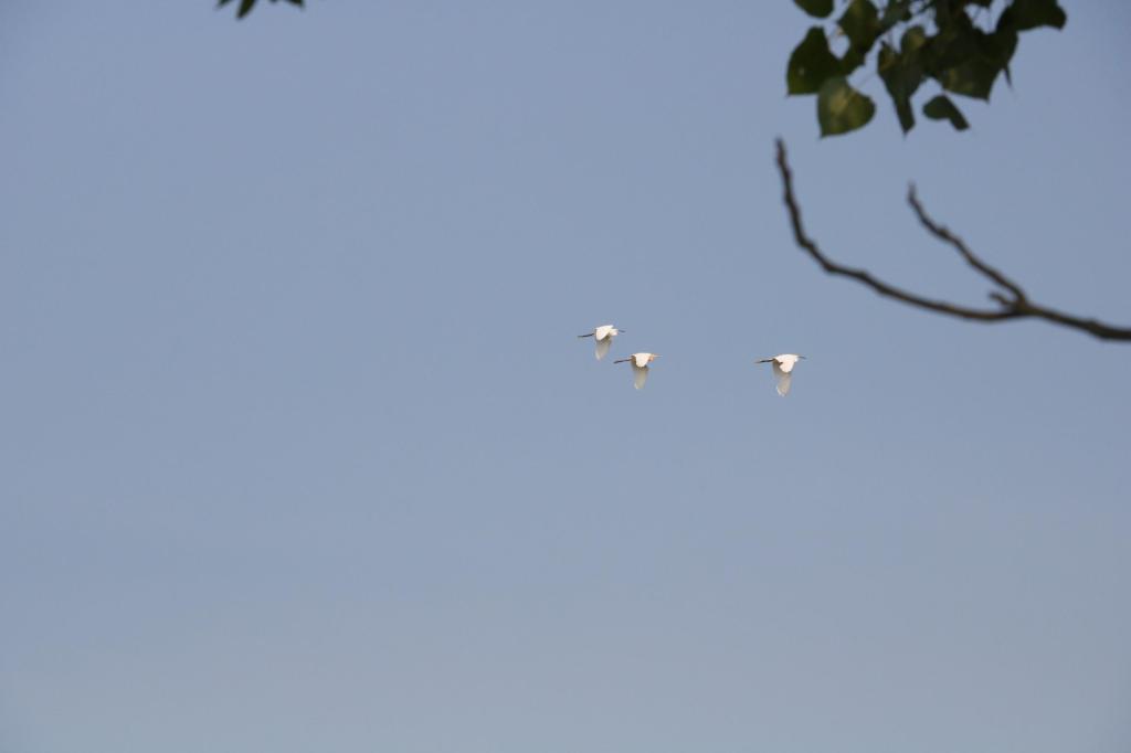 实践团乘坐渡船前往湖对岸的天子岭。志愿者在湖中央时就远远发现天子岭密林最高处的树冠有许多白色鸟儿在翩翩飞舞。从小道进入森林,阳光掩映下,透过婆娑的竹叶,可以看到鸟类在竹林中穿梭飞行。蒋露介绍说,经过六年的试点建设,湿地公园内鸟类数量明显增多,每年春夏时节,会有数以万计的鹭鸟在天子湖群栖。当闻到明显鸟粪味道时,一行人正式到达这群精灵的栖息地。跟随悦耳鸟鸣踏入幽深丛林,调研组成员周俊凯开始了今天的采土工作。他说:这些湿地,不仅是鸟类的天堂,对于维护生态平衡,改善生态状况,实现人与自然和谐,建设美丽中国也具有不可估量的价值。