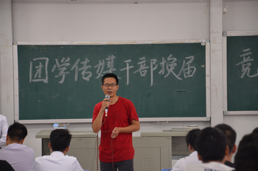 6月20日下午3点,城乡建设学院于明德楼南栋T2教室举办2019届团学传媒干部换届竞选大会。城乡建设学院党总支副书记刘桂江、团总支指导老师廖述海、学生会指导老师宛庭利、传媒中心指导老师何辉、17级辅导员曾艳和徐传鸿老师作为此次竞选的评委出席,三大组织全体成员参加会议。