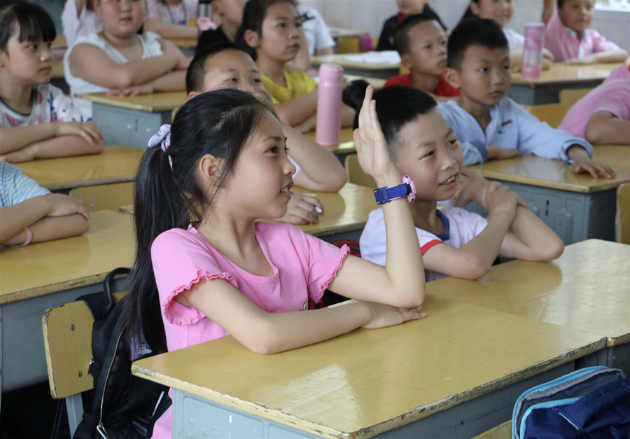 孩子们课堂上积极回答问题