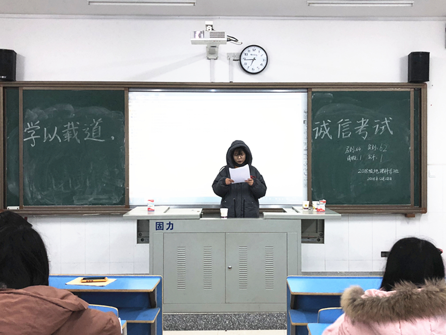 古人云:“人而无信,不知其可也。”为弘扬社会主义价值观,全面贯彻落实学校有关考试的要求,形成良好的诚信之风。12月28日18:30,由城乡建设学院学生会勤工助学部承办,18级各班班委于本班组织开展主题为“学以载道,诚信考试”的班会活动。