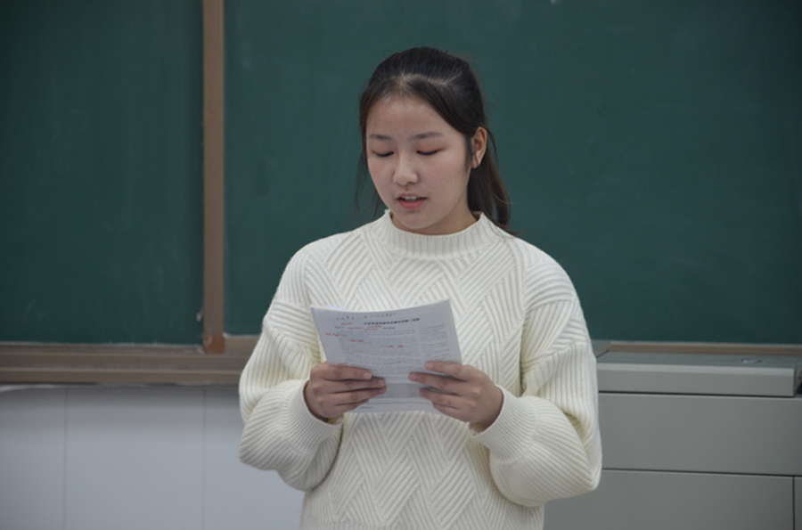 比赛伊始,各班团支书依次抽签决定上场顺序,从对工作的认识、当前工作总结、未来工作计划以及自己的不足之处四个模块来展开此次述职演讲。当谈到对工作的认识16级城乡规划班薛佳文表示“身为团支书,我的主要任务是积极配合学校和学院开展各项活动,做好同学们的思想教育工作当谈到自身的不足之处作为团支书,在之前三个月的工作中有成绩也存在不足,希望自己在今后班级工作中以全心全意为同学服务为中争取更上一层楼。”18级地理科学班刘梦真如是说,精彩的发言获得了一片掌声。