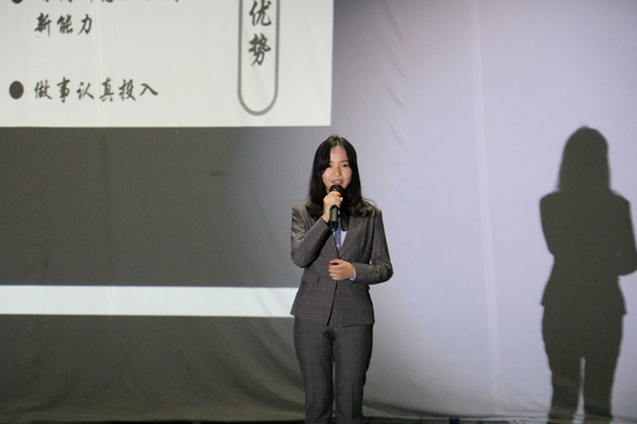 赛上,各位选手依次上台借助PPT对自己的职业规划进行阐述,并通过加时赛进行答辩,接受评委老师的考察。各位选手演讲内容丰富多彩,充分展示了各自的独特性。其中,来自18级地理科学的谢作曼以《随心而行,无问西东》为题,以职业健身教练为就业目标展开演讲,面对中国少年儿童及成年人肥胖率逐渐上升的趋势表达自己的期望和解决方法。虽然职业与他的所学专业毫无关系,但他保持初心随心所向坚持不懈。而来自18级风景园林班滕曾思的《夜空中最亮的星》以生动的比喻和条理清晰的演讲征服了全场,激情洋溢的姿态获得了多数观众和评委老师的认可,最终获得冠军。