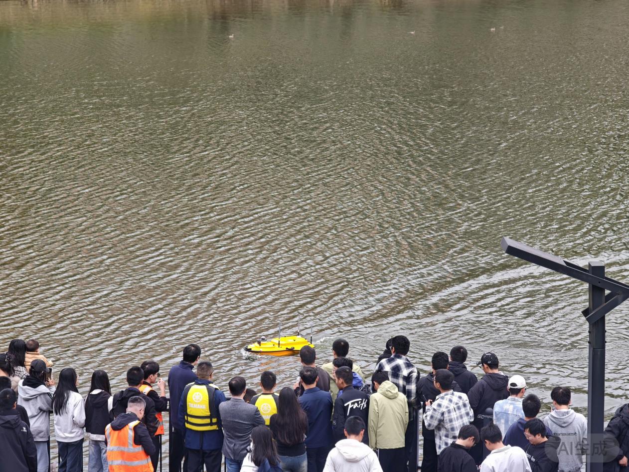 在五泉湖观景台,技术人员向师生展示了华微4号无人船的智能化功能。通过科学设定航线,无人船可实现自主巡航,广泛应用于水利工程建设、数字孪生、河流巡查及抗洪减灾等领域。学生们亲身参与路径规划与驾驶操作,利用多波束测深系统采集水文数据,进一步加深了对智能水域测绘装备的理解。