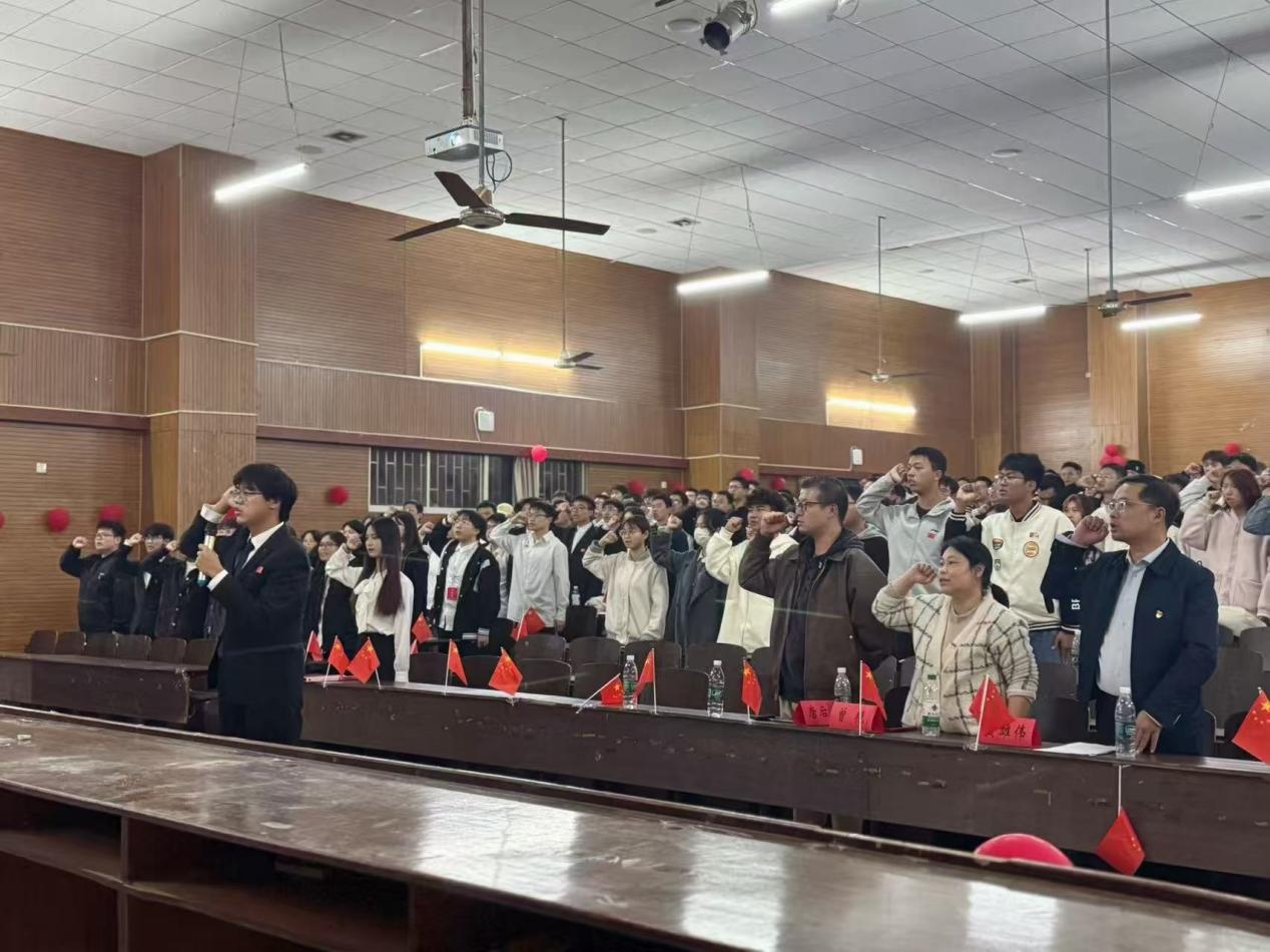 宣讲会的尾声,一场庄严的宣誓仪式将氛围推向顶点。学生党员全文臣举起右拳,声音洪亮地领誓,“我是中国青年,我是祖国忠诚的儿女,五四火种在心,先辈夙愿在胸……”众人挺立如松,目光坚定,庄严跟读。这不仅是一次宣誓,更是一次精神的洗礼和力量的集结。