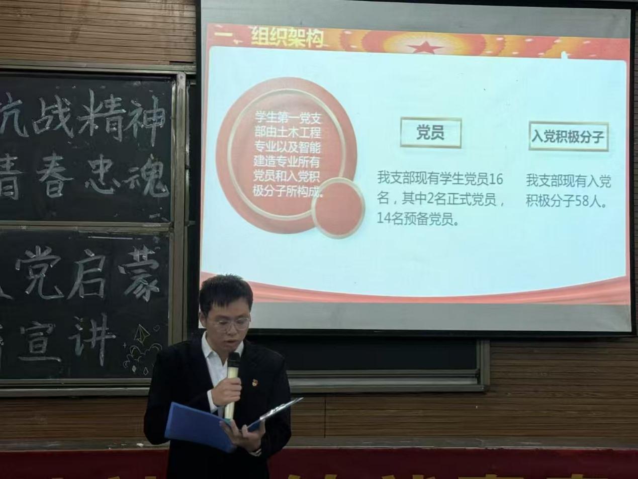 为帮助2025级新生扣好“思想认识”的第一粒扣子,引导新生正确认识中国共产党,2025年10月26日晚上7:00,土木与建筑工程学院于梅子井济世楼南栋107室举行新生入党启蒙教育宣讲会。学院党总支书记黄雄伟,组织员曾艳,学生第一党支部书记唐后乐,党总支第一、二党支部成员以及2025级全体同学参会。