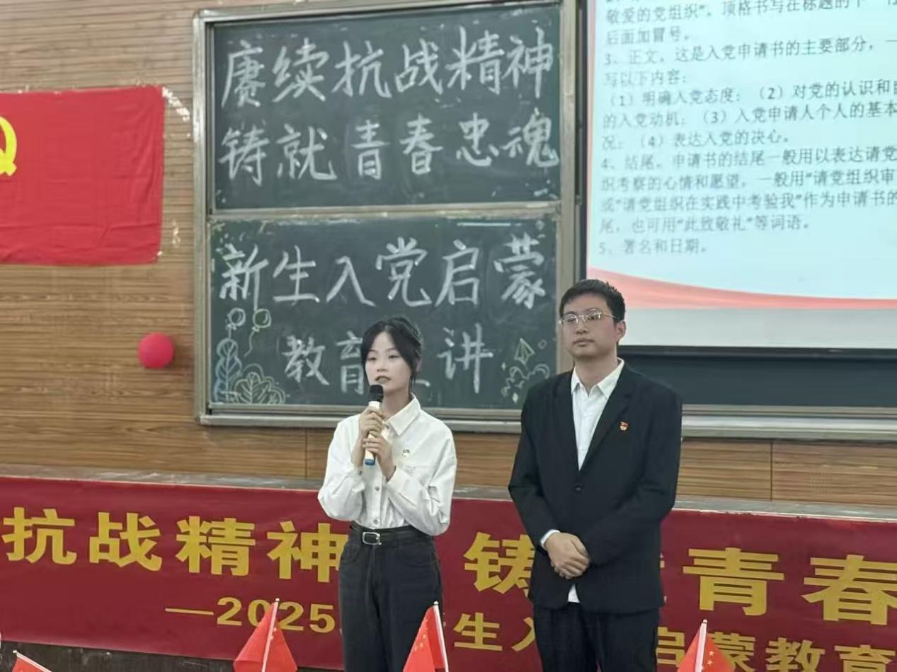 本次入党启蒙教育宣讲会,为2025级新生带来了思想的启迪与精神的滋养,点燃了他们的入党热情,激发了他们向党组织靠拢的坚定意愿。希望2025级同学们以此次启蒙教育为新的起点,奋勇担当,书写无悔青春。
