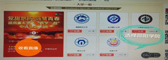 4、观看邵阳学院代表队的比赛,并为我校加油点赞,投上您宝贵的一票