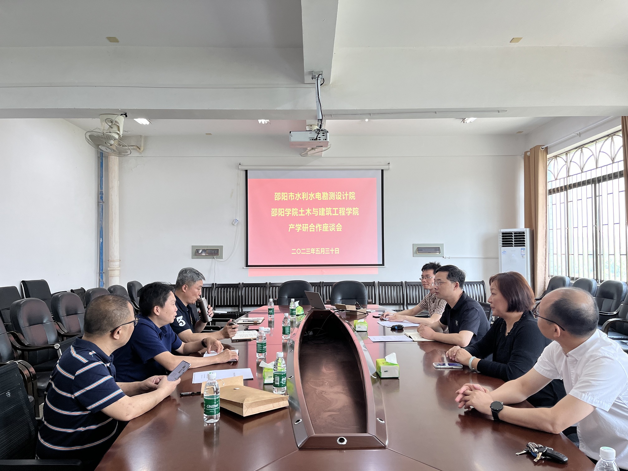 5月30日上午,邵阳市水利水电勘测设计院院长王飚一行来到我院,就校企合作、科技攻关、人才培养、资源共享、成果推广、共建实验室等进行交流。我院党总支书记黄雄伟、副院长宋娟、杨期柱、向泽等领导班子成员参加。