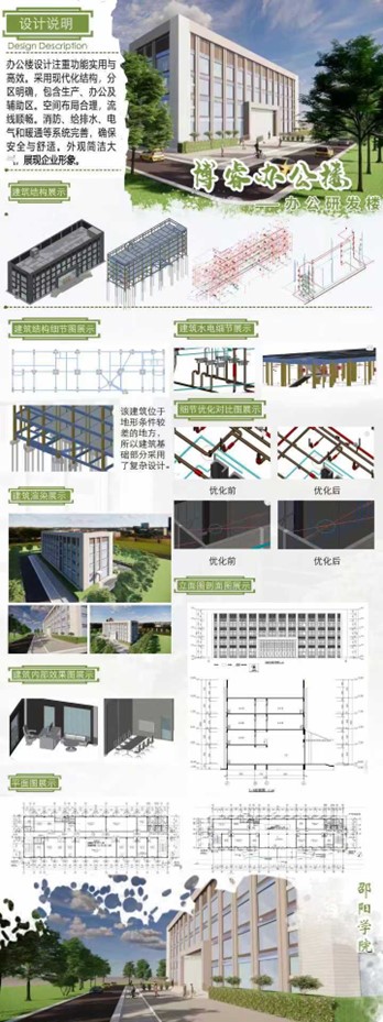 在我校土木与建筑工程学院贺海斌、宋娟、王晋、周卫等老师的悉心指导下,在学院领导的大力支持下,我校土木学子李娜、刘嘉洋、王萌月、谢锦杰、汪添磊、李再、罗任钧、盛舒馨等八位本科同学组成2支队伍参赛,凭借《邵阳学院学生宿舍36#设计》和《博睿办公楼设计》两个作品,成功斩获本硕组二等奖2项。