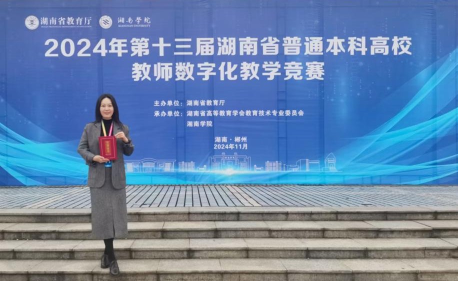 11月25日,湖南省教育厅主办的两大重要教学竞赛——2024年第十三届湖南省普通本科高校教师数字化教学竞赛圆满落幕。我院李菁老师教学团队获得了湖南省数字化教学竞赛一等奖,为我院赢得了荣誉。