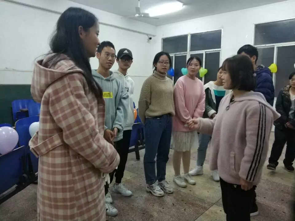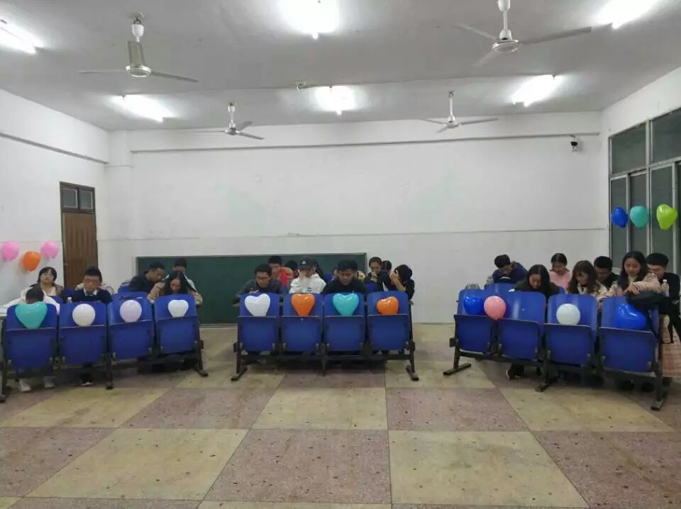 座谈会正式开始,简单介绍座谈会主题以及相关背景后,直奔游戏环节,首先是大树、松鼠、松子手牵手毛毛虫”三个游戏,四位同学为一组,同学们玩得不亦乐乎。游戏环节结束后曾艳老师以自身的经历切入主题,让大家写下自己进入大学后对最想感谢的人想说的话,或者是写下自己因各种因素不便于说出口的话。座谈会最后,同学们合唱歌曲《感恩的心》并合照留影,由主持人宣布座谈会结束。