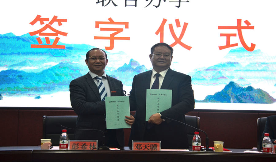 会议伊始,伟大集团与邵阳学院签订联合办学协议,校长彭希林聘请邓天骥为邵阳学院的客座教授。邓天骥亲切地向邵阳学院学子问好,并心潮澎湃地分享了他当年风华正茂的求学经历及如何带领伟大集团发展的历程。他自豪地说道,伟大集团是一家以城乡一体化特色小镇开发建设为主,集金融、投资、基金管理、地产开发、节能建筑、工程建设等多方面于一体产融结合的大型现代企业集团,今后将继续高举城乡一体化发展的“伟大模式”大旗,矢志破解城乡二元困局,最终实现人企和社会的共赢发展。