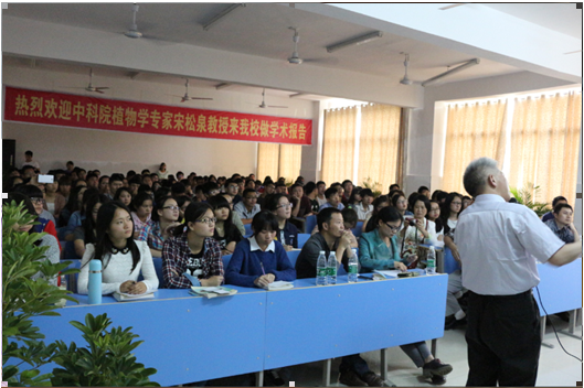 2015年5月12日,中科院植物所首席研究员宋松泉教授来我校讲学。宋松泉:研究员、教授、博导、国家基金评委、国际种子科学学会东亚地区代表、中国植物学会种子科学与技术专业委员会主任委员,研究方向:种子生物学与生物技术、植物分子生理学。.