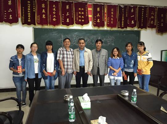 20151010日下午,邵阳学院91届校友孙清良来到城市建设系,在系领导和老师的陪同下,对贫困学生进行资助。孙清良校友是邵阳市规划设计院的院长,曾多次回母校进行专业学术报告,与城建系的学生交流密切。孙清良在捐赠时深情地表示:我是邵阳学院培养的学生,对母校一直有着深厚的感情,想尽自己的绵薄之力来回报母校。尽管这次资助对受助学生可能是杯水车薪,但也希望能够传递一份爱心,让母校学子感受一份温暖。这次对五名学生每人资助一千元,只是我个人一点小小的心意,今后同学们有什么困难可以向我提出,我将尽力而为。城市建设系主任段林东教授对校友孙清良的善举发表了热情洋溢的讲话,系党总支夏世忠书记也对受助学生提了两点希望:希望同学们继续努力学习和工作,以优异的成绩回报校友的无私帮助;希望同学们向优秀校友学习,用行动改变自己的命运,并将爱心无私传递。