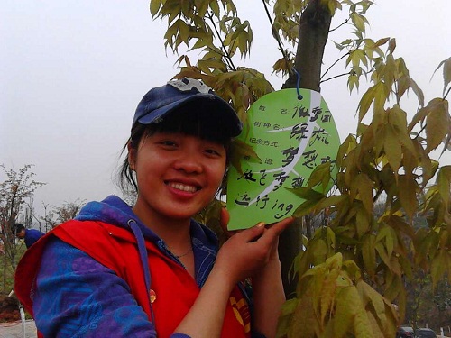 据了解,与往年不同的是此次栽种的树种主要是红枫和青枫。在活动开展前,举办方就规划了树木的栽植密度,并且事先挖好了树坑。活动当天,志愿者们仅仅需要对挖好的树坑进行简单的修整,然后将领取的树苗放在挖好的坑中,一人扶正树苗,一人用铁楸加土,加到一定深度时将树苗轻轻往上拉,接下来把土踩紧,并且围着树用土培成一个圆形土坝,然后给树苗浇透水。志愿者们将树栽好之后,大家将事先准备好的树牌写上树种名、自己的姓名和寄语,最后将写有信息的树牌挂在小树上。志愿者们团结一致,齐心协力,在短时间内就栽种了近两百棵小树苗。相比去年来说,今年的劳动成果比去年高了近2倍多,而且活动的影响力也更加广泛,参加的人数也更多。